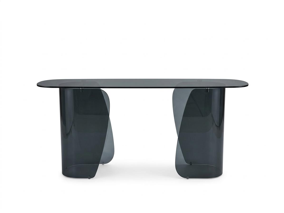 Size:170*40*76cm Top: 10MM SMOKE glass,aluminum plate Leg: 10MM SMOKE glass
